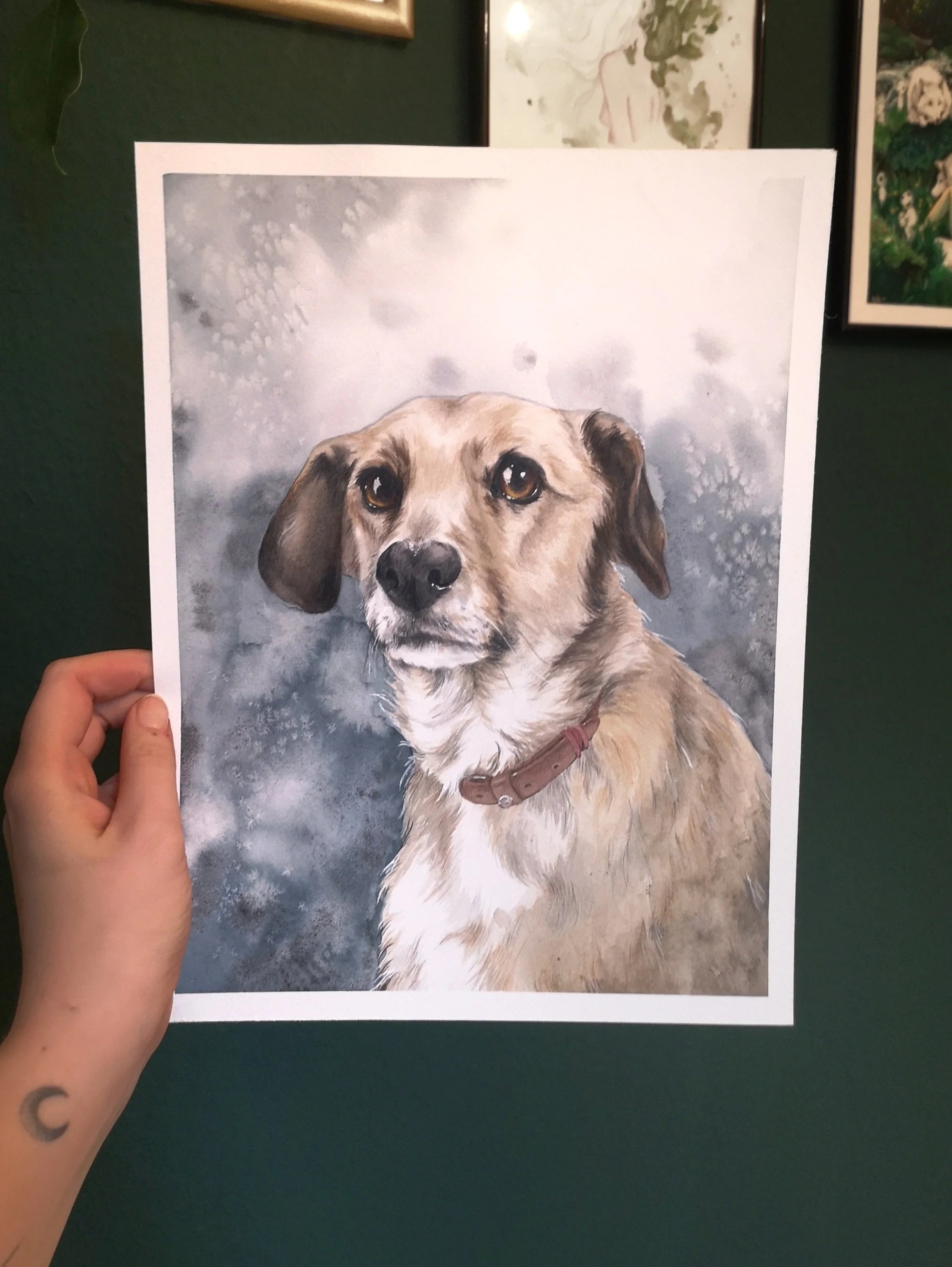 Painting your loved ones is such an honor to me and I’ll make sure to give my very best to catch their spirit in my watercolor paintings.There are different ways in doing so, I could either paint a more photorealistic artwork or a stylized character with more storytelling elements. (Pictures below)